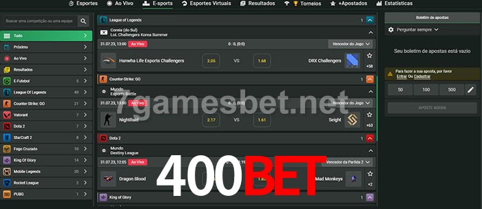 A aposta 400bet oferece aos jogadores a experiência mais conveniente de apostas em eSports!
